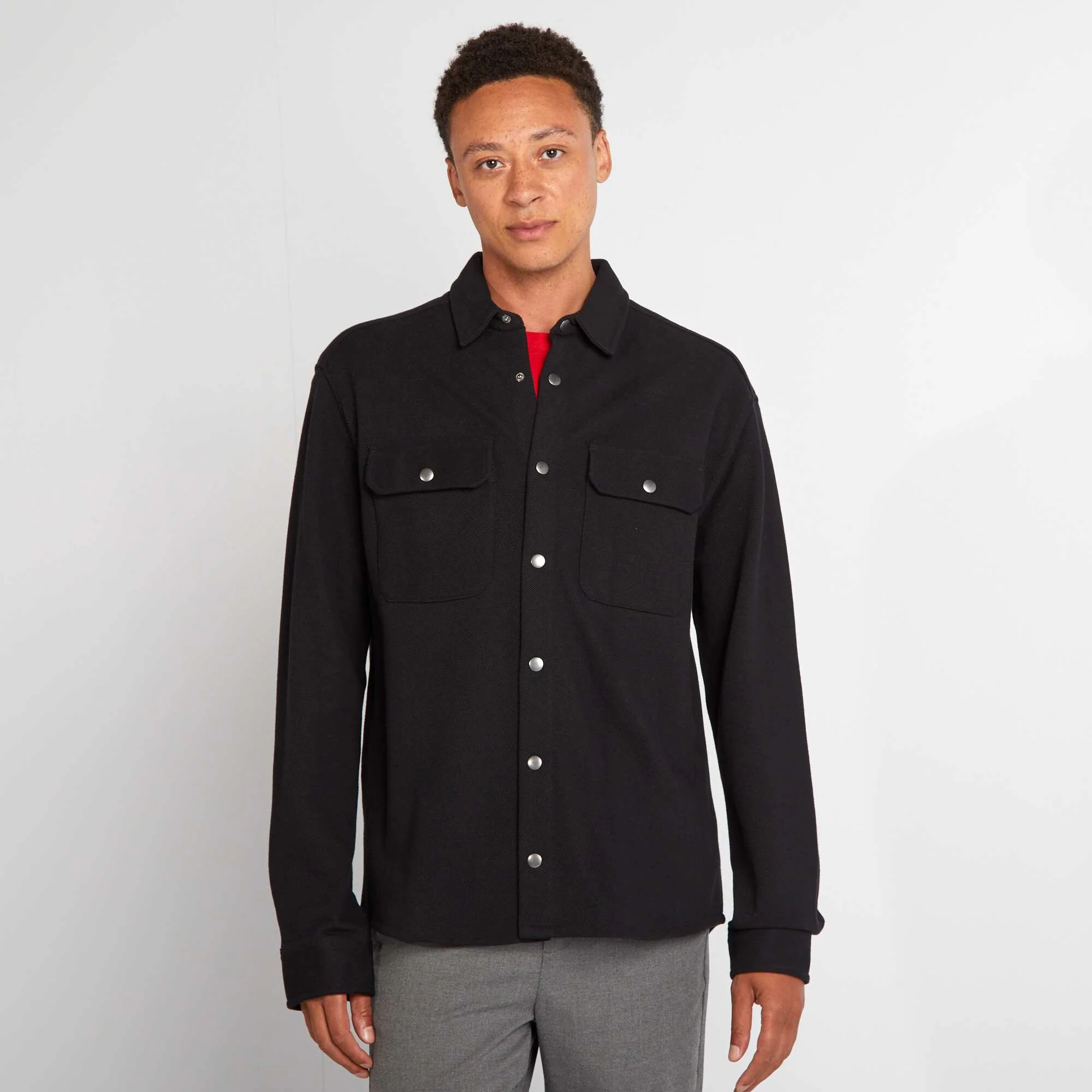 Piqué knit overshirt with pocket black